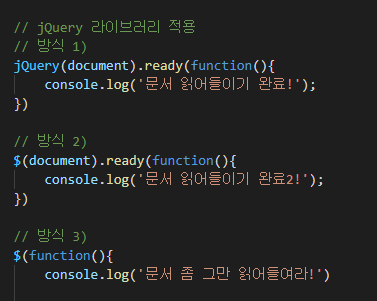 제이쿼리에서 해당 function은 html문서 내의 document요소들만 로드되면 바로 실행되게 된다.